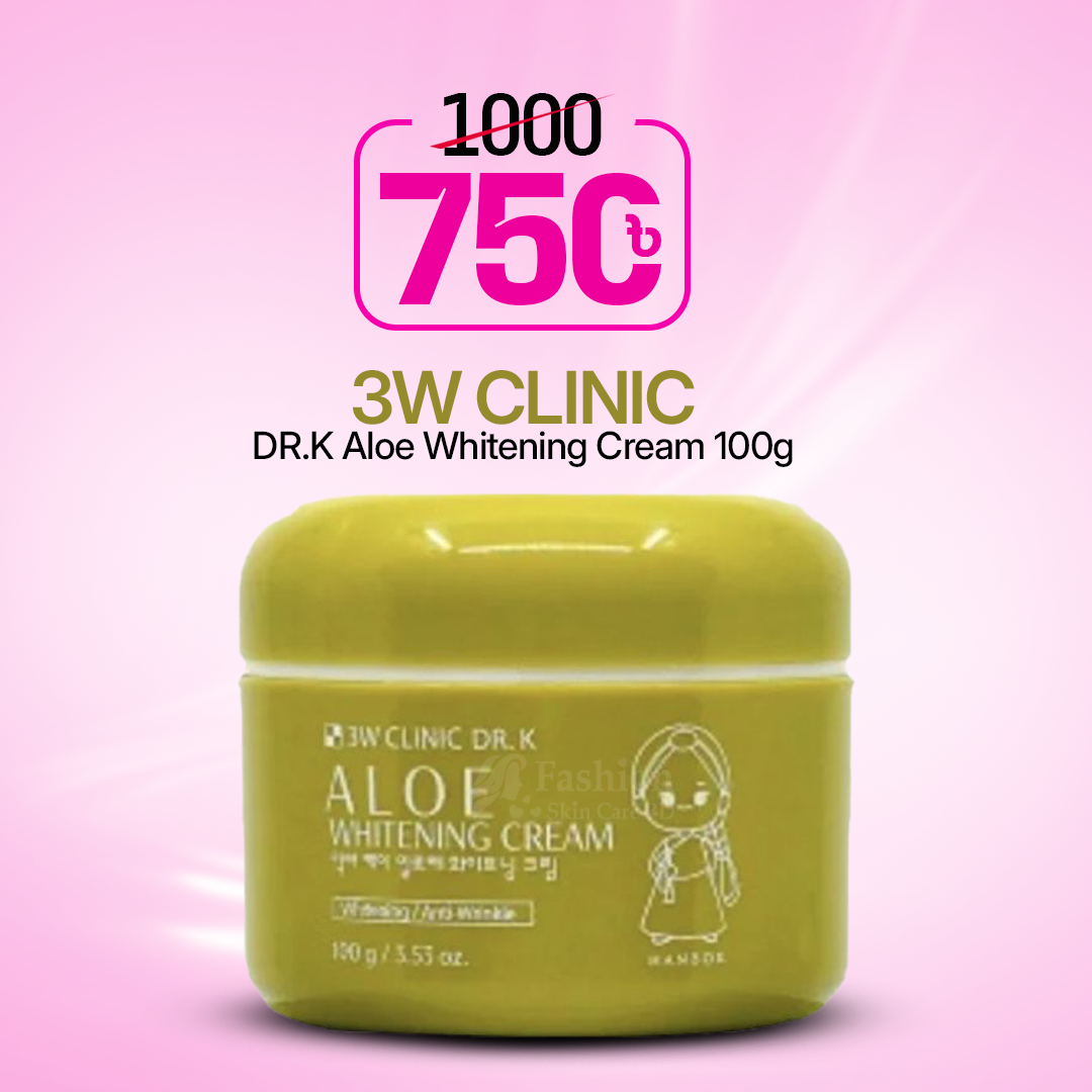 Transform your skincare routine with the 3W Clinic DR.K Aloe Whitening Cream. Shop now and achieve a radiant complexion at Fashionskincarebd!