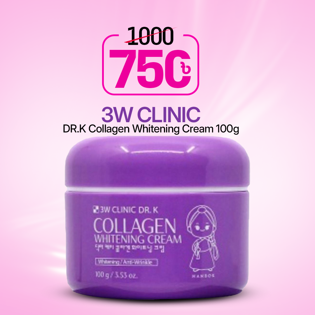 Revitalize your skin with the 3W Clinic DR.K Collagen Whitening Cream. Order now and achieve a radiant and youthful glow from Fashionskincarebd!