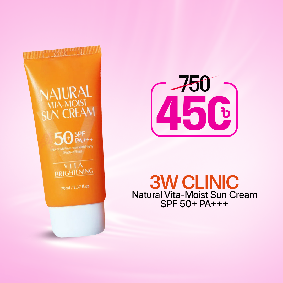Discover the ultimate protection for your skin with the 3W Clinic Natural Vita-Moist Sun Cream SPF 50+ PA+++, now available at fashionskincarebd. This advanced sun cream is designed to provide comprehensive protection against harmful UVA and UVB rays while delivering nourishing skincare benefits.