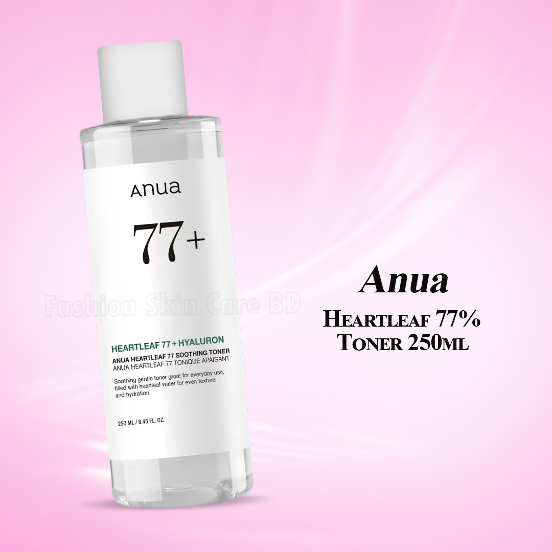 Revitalize and soothe your skin with the Anua Heartleaf 77% Soothing Toner, now available at Fashionskincarebd. This gentle toner is crafted with 77% heartleaf extract, a powerful ingredient known for its calming and hydrating properties, making it an essential step in your skincare routine.