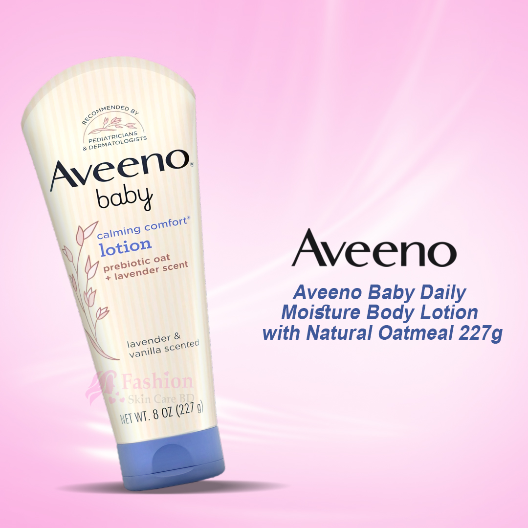 AVEENO Baby Daily Moisture Lotion – Gentle, nourishing care with natural Colloidal Oatmeal & dimethicone. Provides 24-hour moisture, protects delicate skin, and keeps it soft, smooth, and healthy-looking. Hypoallergenic, non-greasy, and free from fragrance, parabens, and steroids—safe for daily use.