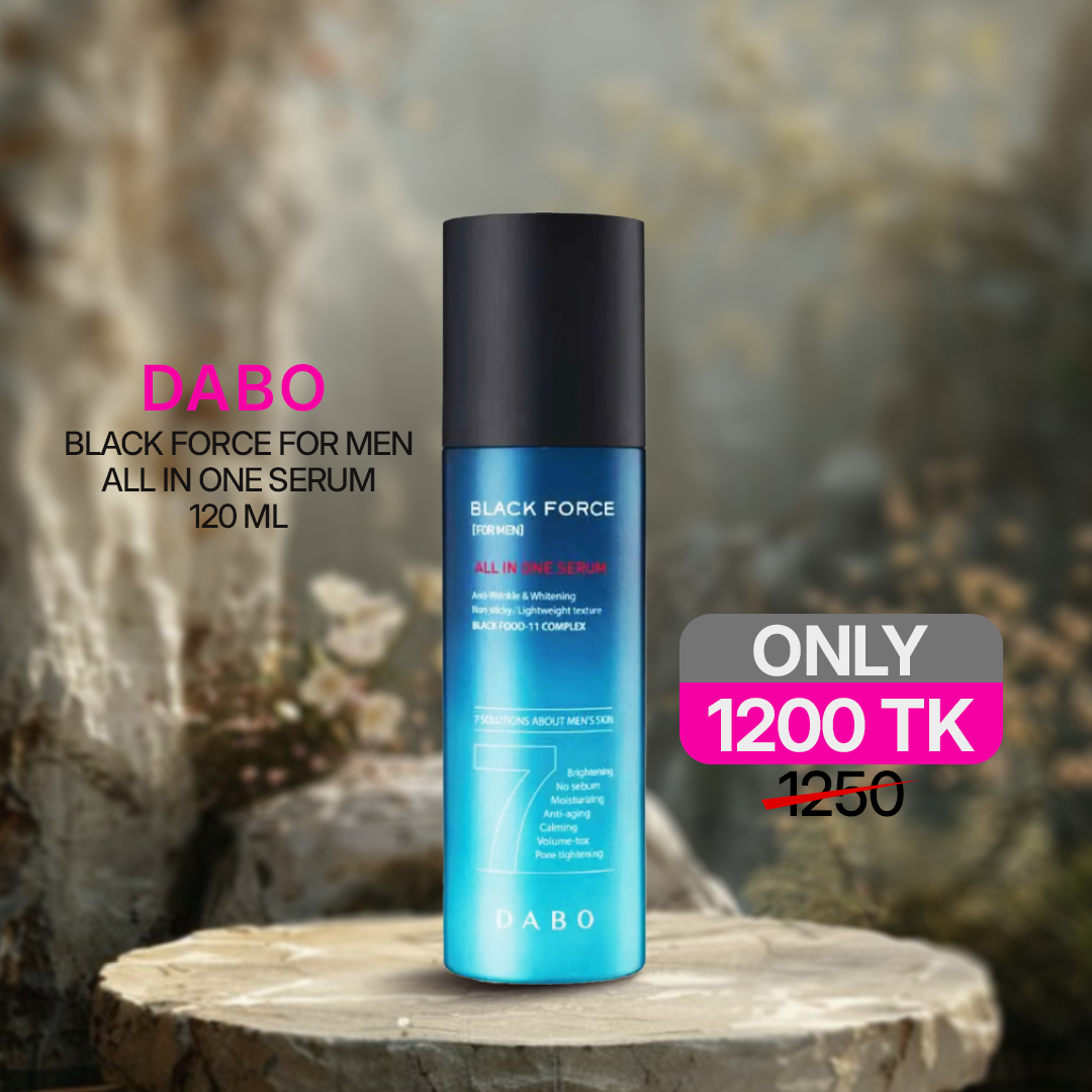 At fashionskincarebd, we offer authentic Korean skincare products tailored to the needs of Bangladeshi customers. With our commitment to quality and customer satisfaction, you can trust us to provide the best skincare solutions. Add Dabo Black Force For Men All In One Serum 120ml to your cart today and experience effortless skincare for men.