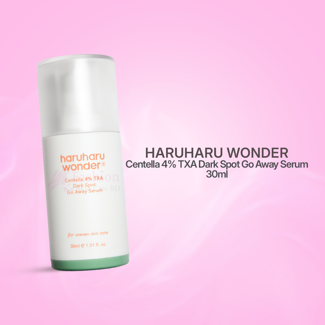 The Haruharu Wonder Centella 4% TXA Dark Spot Go Away Serum is a potent brightening and spot-correcting serum formulated to fade dark spots, hyperpigmentation, and uneven skin tone. Enriched with 4% Tranexamic Acid (TXA) and Centella Asiatica Extract, it soothes irritated skin while effectively reducing pigmentation. Its lightweight, fast-absorbing texture makes it suitable for daily use on all skin types, even sensitive skin.