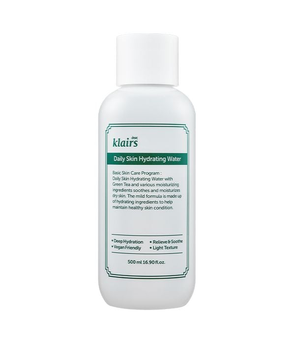 KLAIRS Daily Skin Hydrating Water is a gentle, refreshing hydrating water designed to replenish moisture and soothe the skin. Suitable for all skin types, including sensitive skin, this lightweight formula balances hydration, preps the skin for serums and creams, and leaves a soft, smooth, and refreshed complexion. Its large 500ml size makes it perfect for daily use and long-term hydration.
