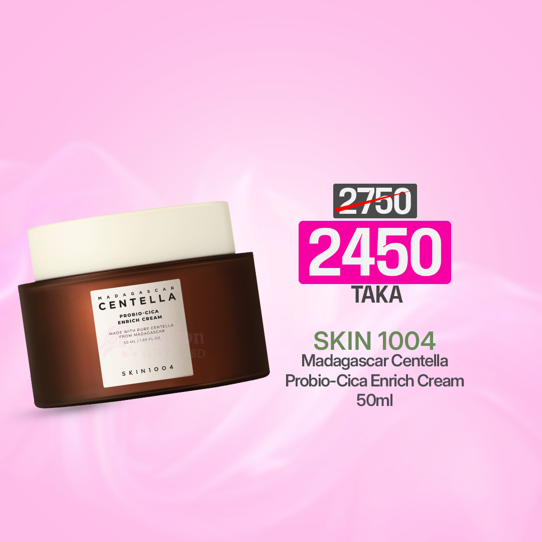 At fashionskincarebd, we offer authentic Korean skincare products tailored to women in Bangladesh. The SKIN1004 Madagascar Centella Probio-Cica Enrich Cream is your go-to solution for sensitive, dehydrated, or damaged skin. Shop now to experience the ultimate skin barrier repair cream trusted by skincare enthusiasts worldwide.