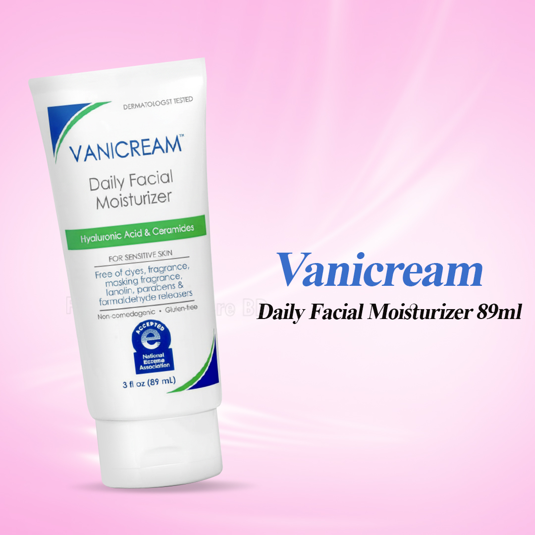 Vanicream Daily Facial Moisturizer – 89 ml is a dermatologist-developed, lightweight lotion specially designed for dry to very dry, sensitive skin. Formulated with Hyaluronic Acid and five essential Ceramides (EOP, NG, NP, AS, AP), it helps to restore and maintain the skin’s natural protective barrier while providing long-lasting hydration.