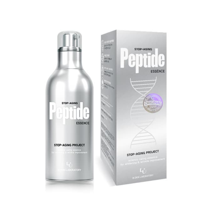 W.Skin Laboratory Stop Aging Peptide Essence (100ml) is a potent anti-aging essence formulated to rejuvenate the skin and promote a youthful appearance. Infused with a blend of peptides and other nourishing ingredients, this essence targets signs of aging, such as fine lines and wrinkles, while enhancing skin elasticity and firmness.